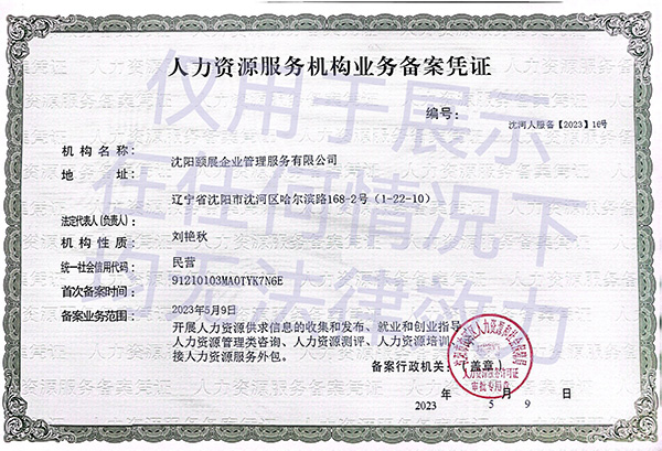 人力資源服務(wù)機(jī)構(gòu)業(yè)務(wù)備案憑證